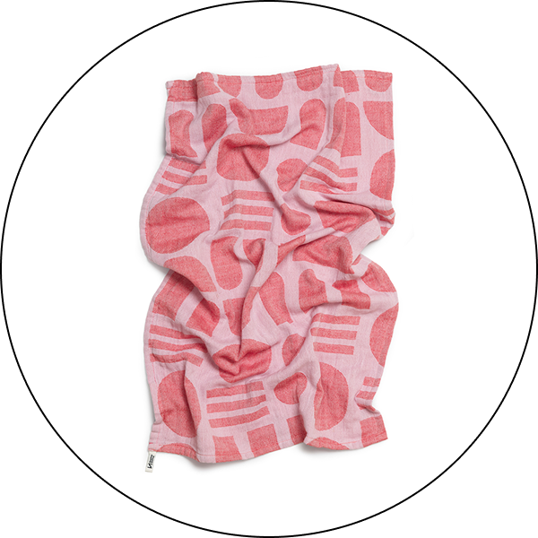 Designer Cotton Tea Towel: Stack The Dishes Pink