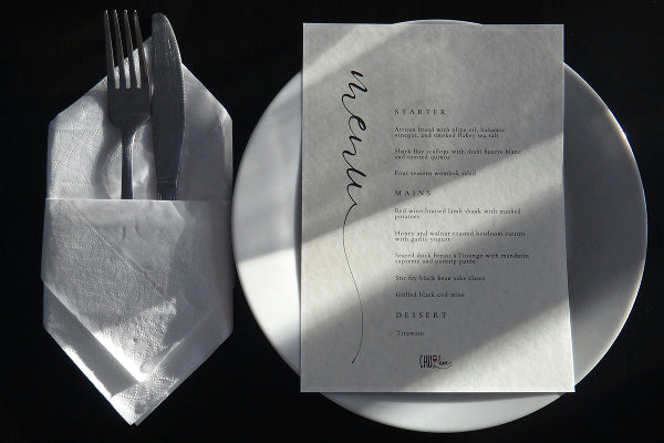 Napkins are a great place to introduce small decorative touches. Tuck in a sprig of rosemary, thyme, or a tiny bloom for a seasonal feel, or add a simple place card tied with ribbon. Handwritten notes and personalised gifts (such as a sweet treat) add that extra touch and can make guests feel especially welcome.