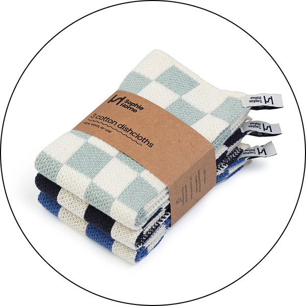 Reusable Check Dishcloths: Citrus/Ink/Green